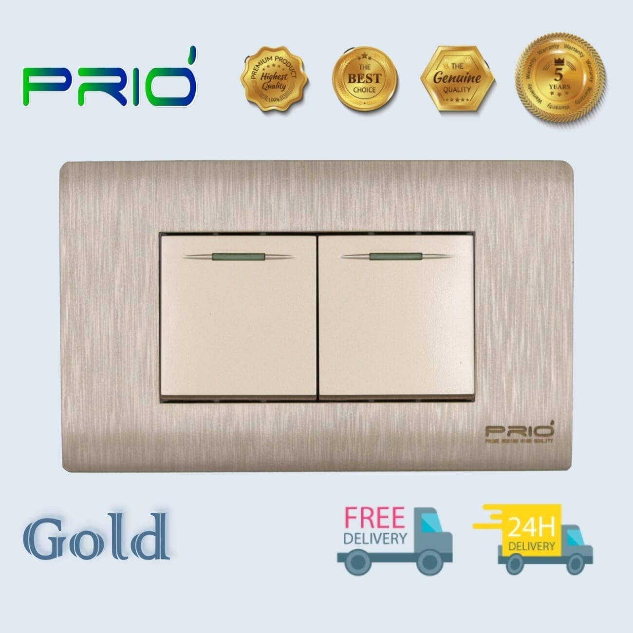 Gold Golden Plastic Plate สวิตช์ 2 ทาง + สวิตช์ 2 ทาง