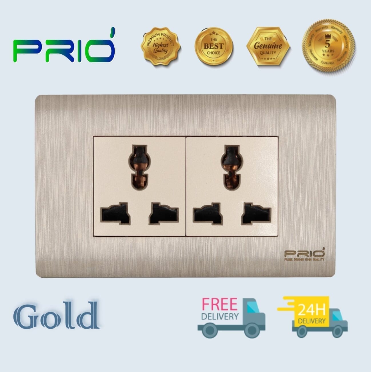 PRIO อุปกรณ์สวิทช์ ปลั๊กไฟบ้าน สวิทช์ usb ยี่ห้อ พรีโอ่ รองรับกระแสไฟฟ้า AC 110 ~ 250V , USB 5V 2000mA