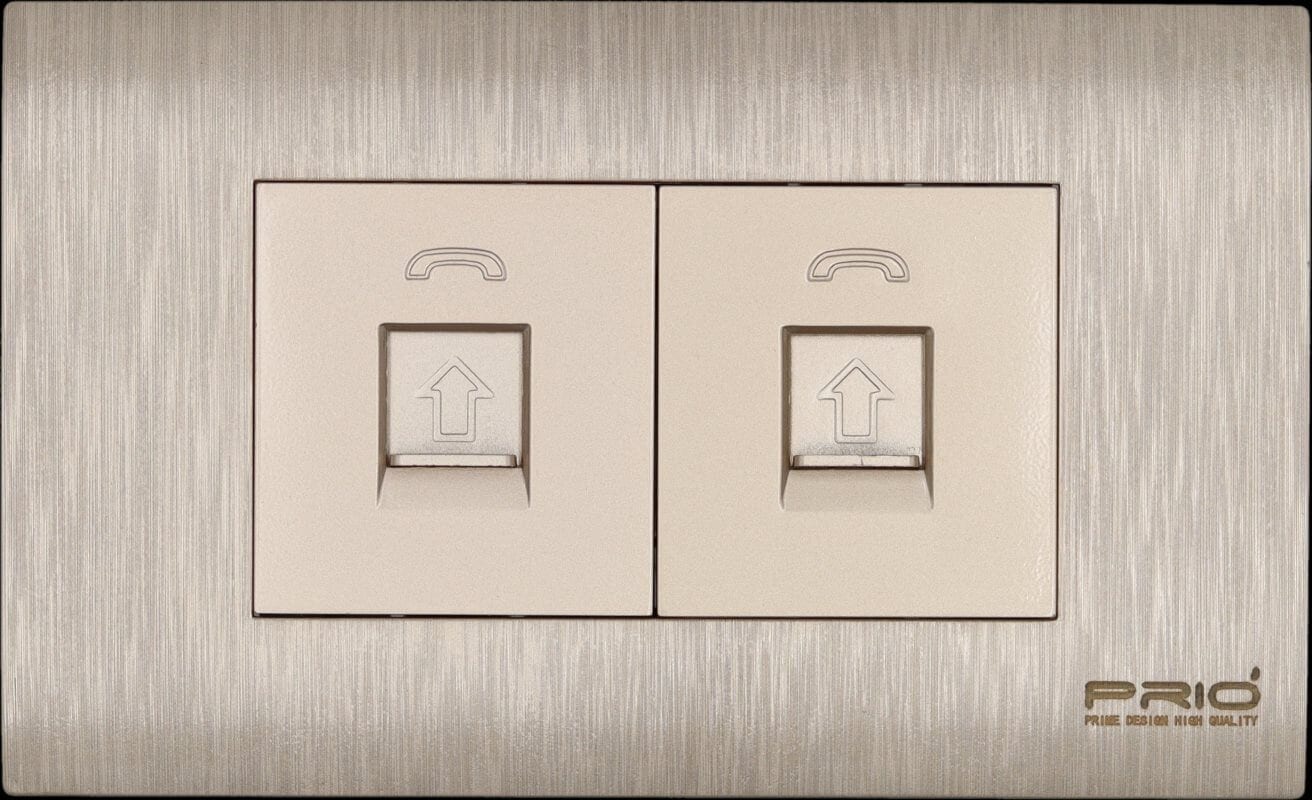 PRIO อุปกรณ์สวิทช์ ปลั๊กไฟบ้าน สวิทช์ usb ยี่ห้อ พรีโอ่ รองรับกระแสไฟฟ้า AC 110 ~ 250V , USB 5V 2000mA USB socket 2.0A + 1 gang RJ11 Telephone socket คุณสมบัติ: