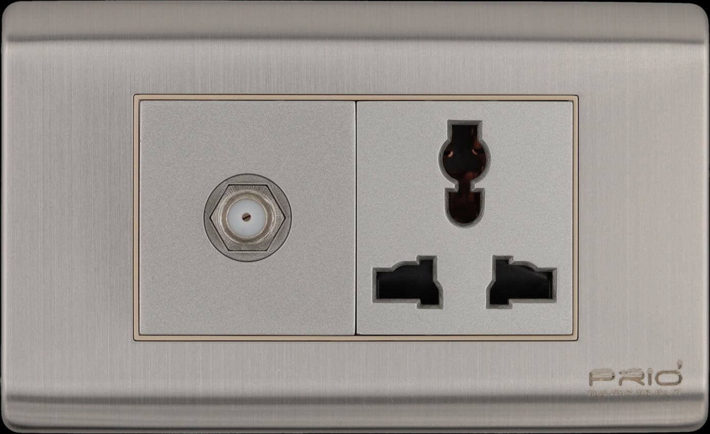 1 gang tv socket + 1 gang socket universal