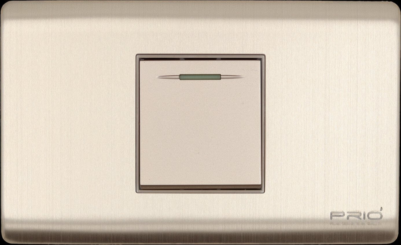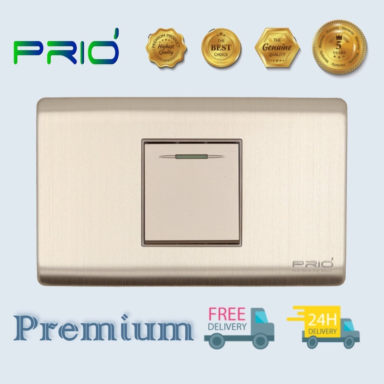 PRIO อุปกรณ์สวิทช์ ปลั๊กไฟบ้าน สวิทช์ usb ยี่ห้อ พรีโอ่ รองรับกระแสไฟฟ้า AC 110 ~ 250V , USB 5V 2000mA 1 gang 2 way switch with neon + USB socket 2.0A คุณสมบัติ: