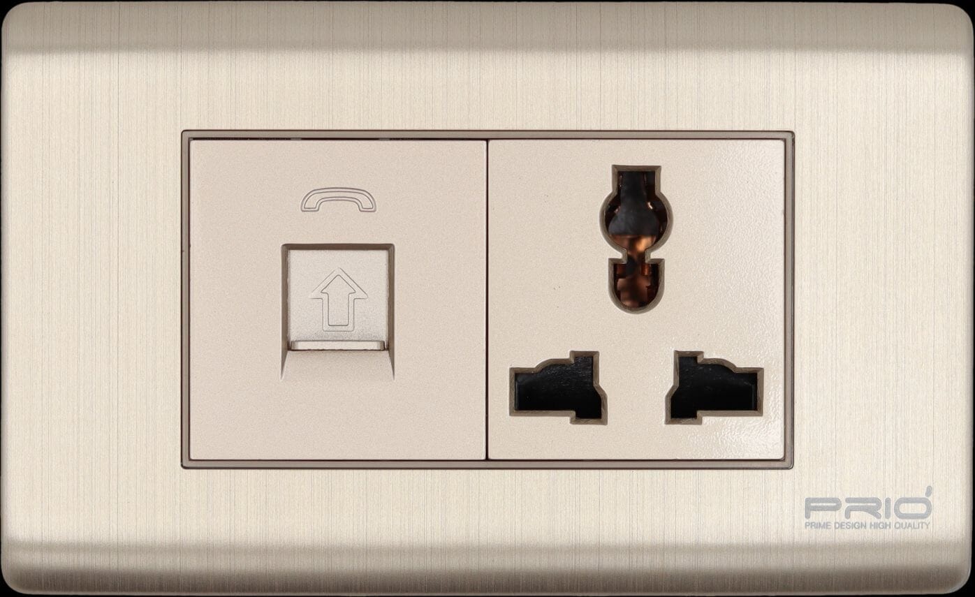Premium Golden Aluminum Plate โทรศัพท์ + เต้ารับ 3 ขา ม่าน นิรภัย