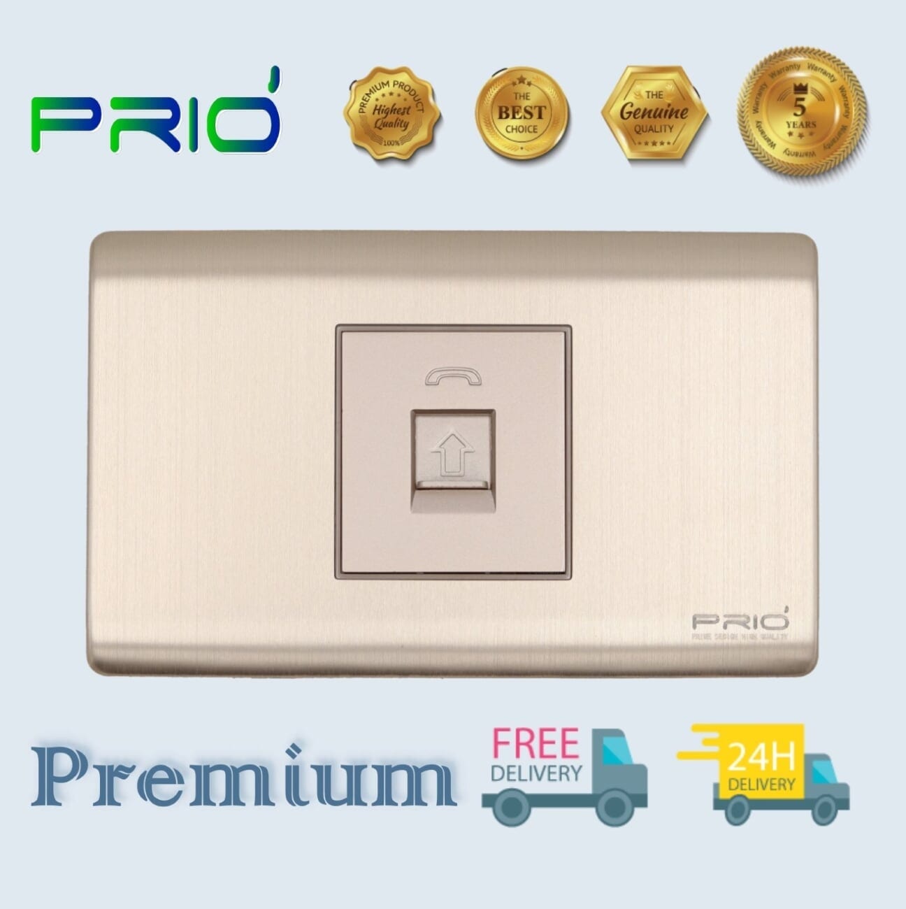 PRIO อุปกรณ์สวิทช์ ปลั๊กไฟบ้าน สวิทช์ usb ยี่ห้อ พรีโอ่ รองรับกระแสไฟฟ้า AC 110 ~ 250V , USB 5V 2000mA 1 gang RJ11 Telephone socket + 1 gang LAN RJ45 socket คุณสมบัติ: